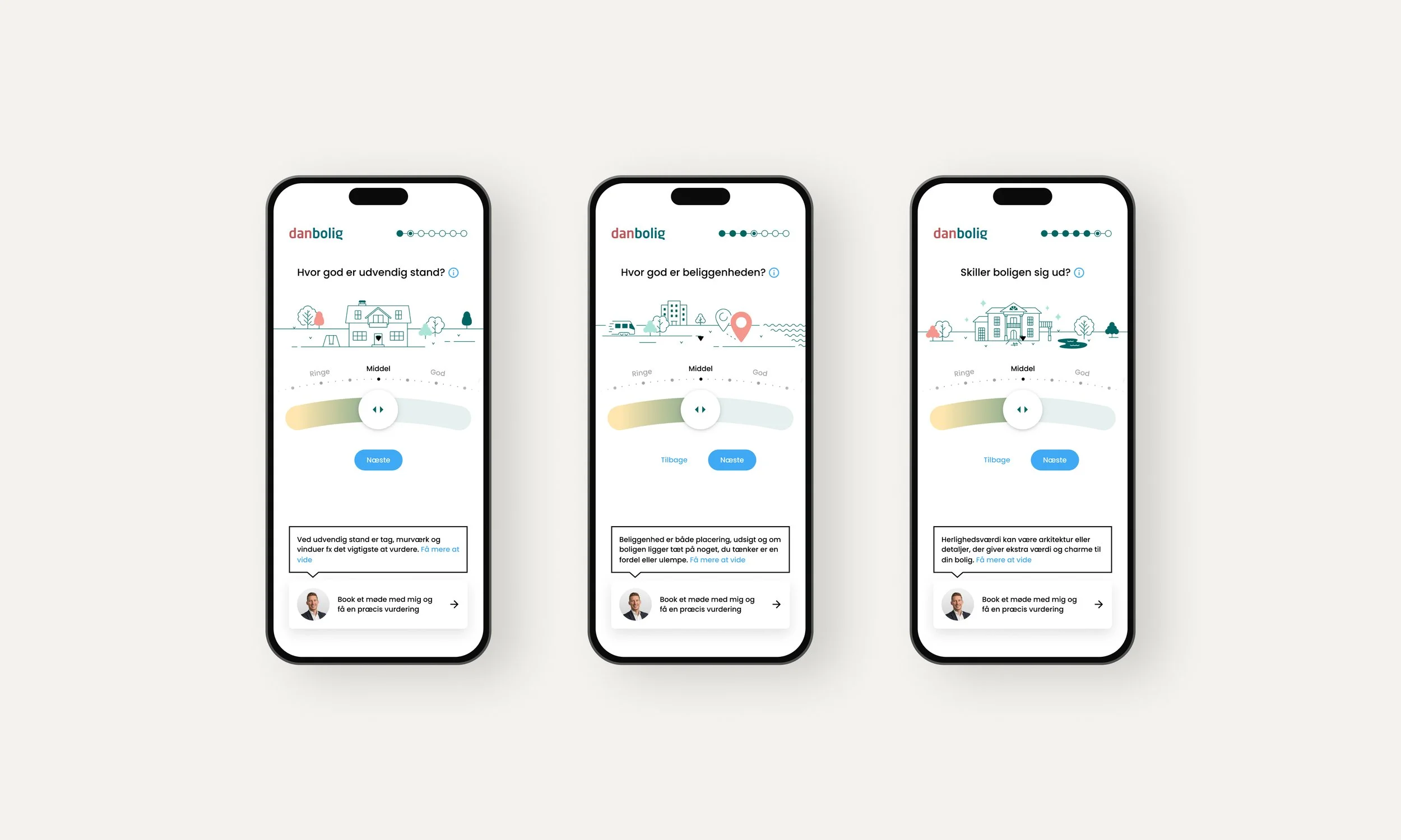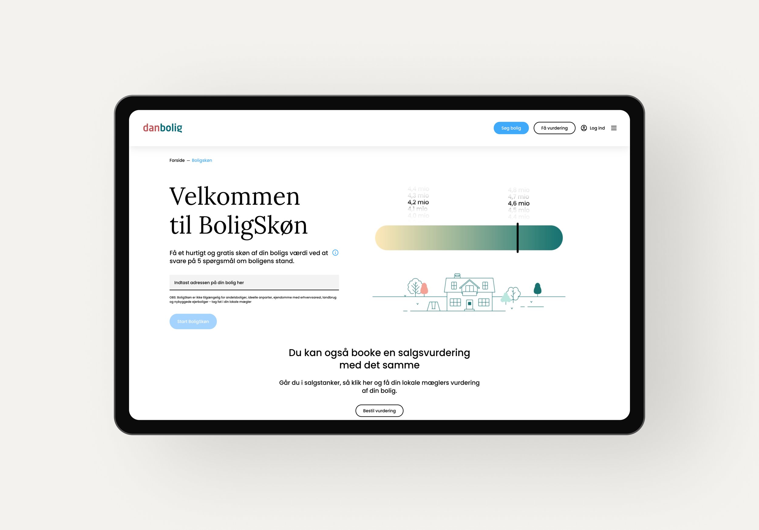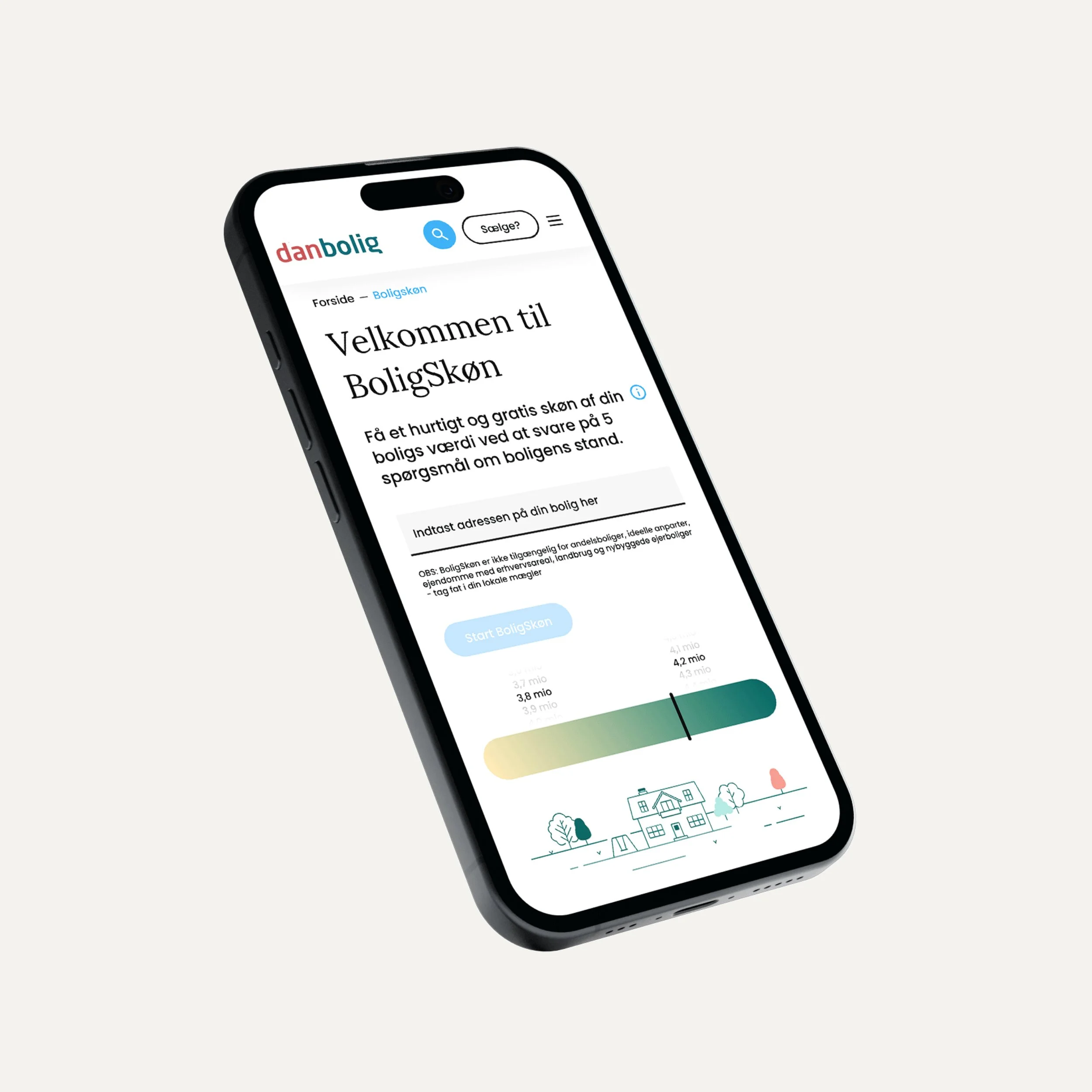One of the new projects I was tasked with was the BoligSkøn tool that needed a complete redesign. Through a short exploration phase we came up with a new illustration style and a completely new way of using BoligSkøn, one that was more playful and engaging for the user.