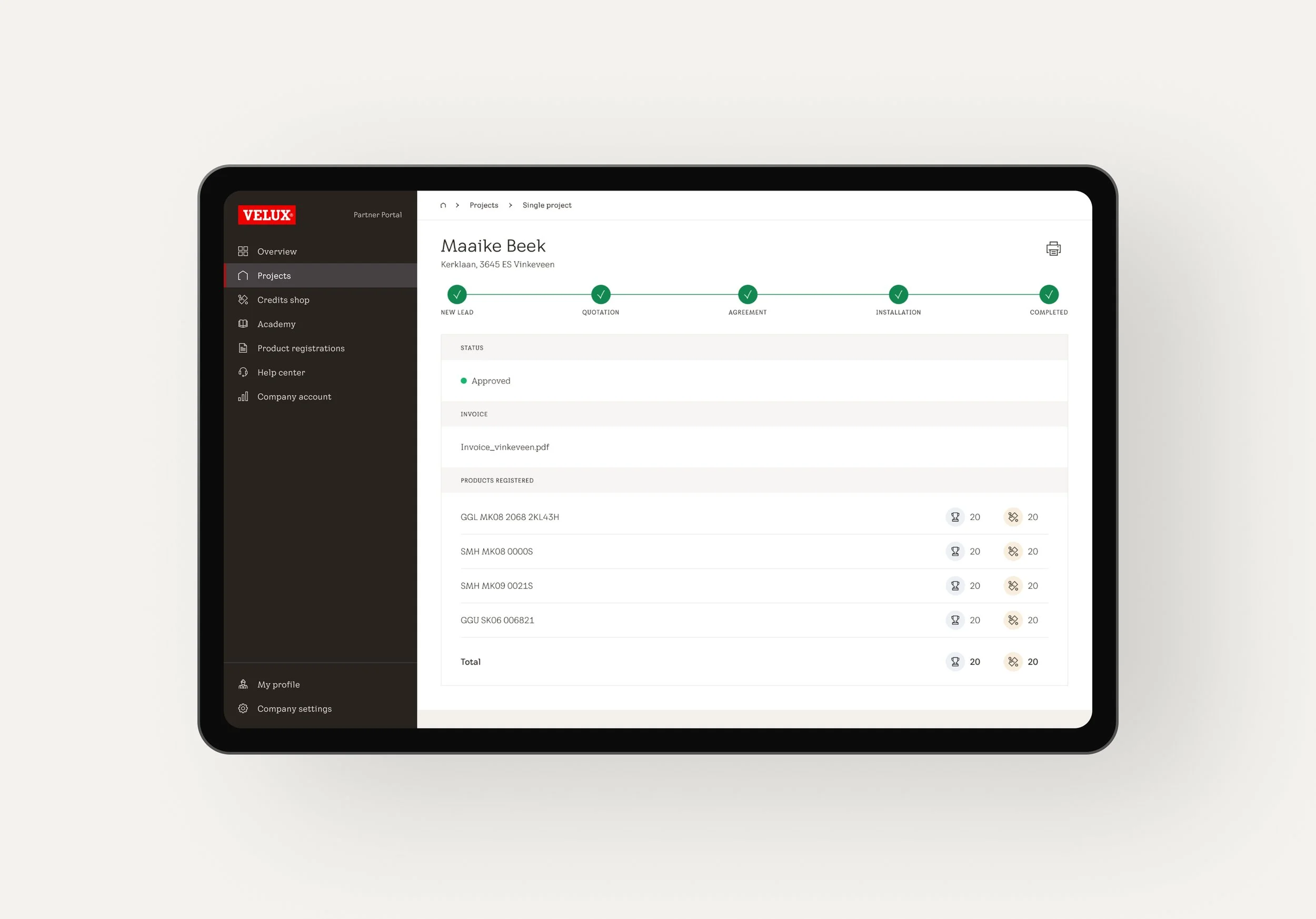 By balancing intricate business logic with user-centric design, I delivered a robust tool that empowers installers to manage their projects, get services/benefits through a loyalty program and become stronger business partners with VELUX.